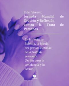 8 de Febrero, festividad de Sta. Josefina Bakhita, se celebra la Jornada Mundial de Oración y Reflexión contra la Trata de personas.